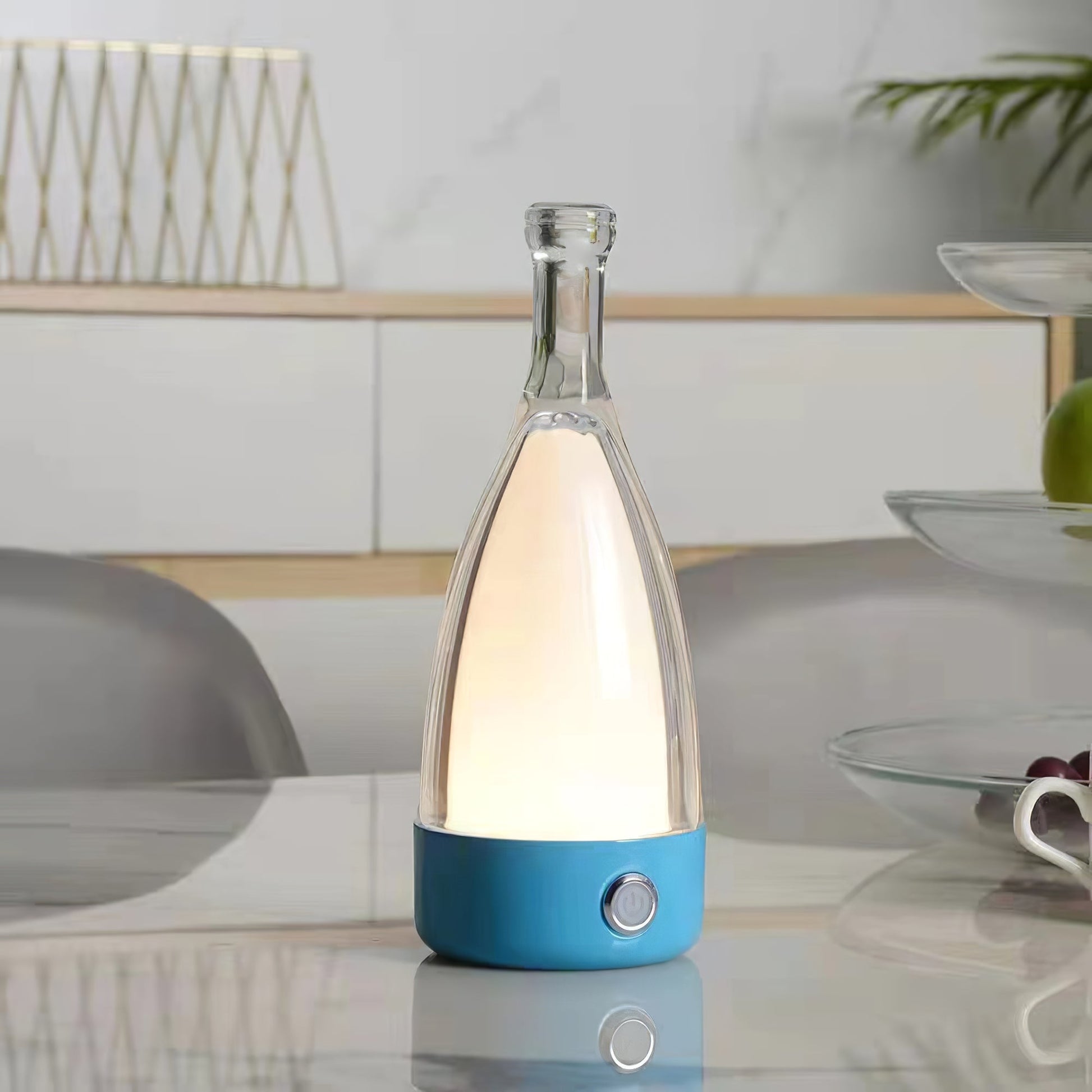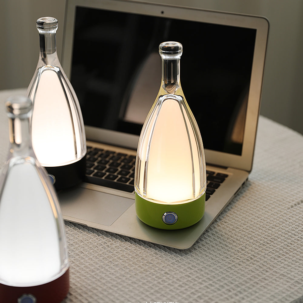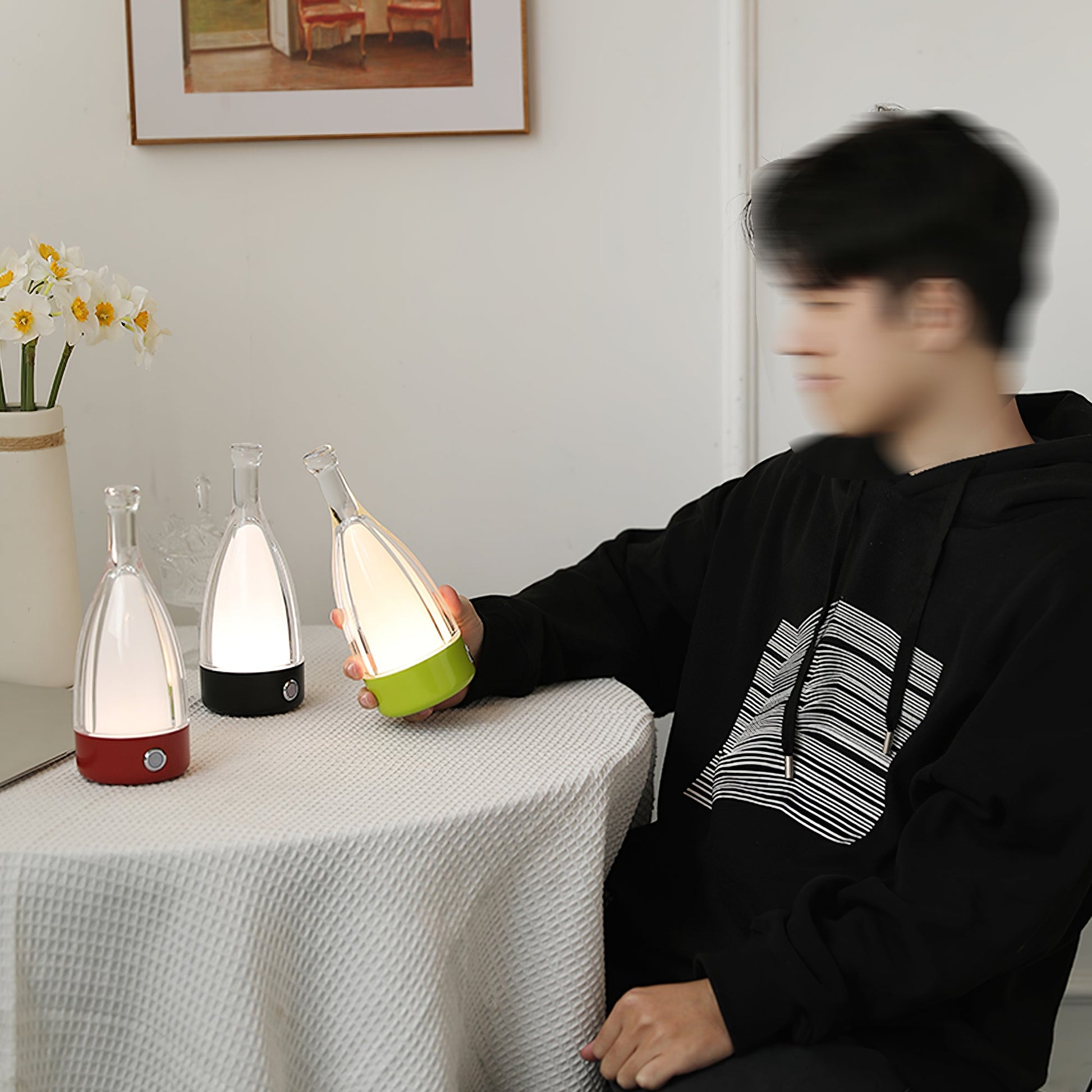 Shaped like a bottle, but what sets this lamp apart is the beauty of its diffused light and its solid transparent glass.A charming look with practical function makes this table lamp set an ideal illumination source. Designers extend geometric elements into broader and deeper philosophies; a few strokes outline the soul art of light.