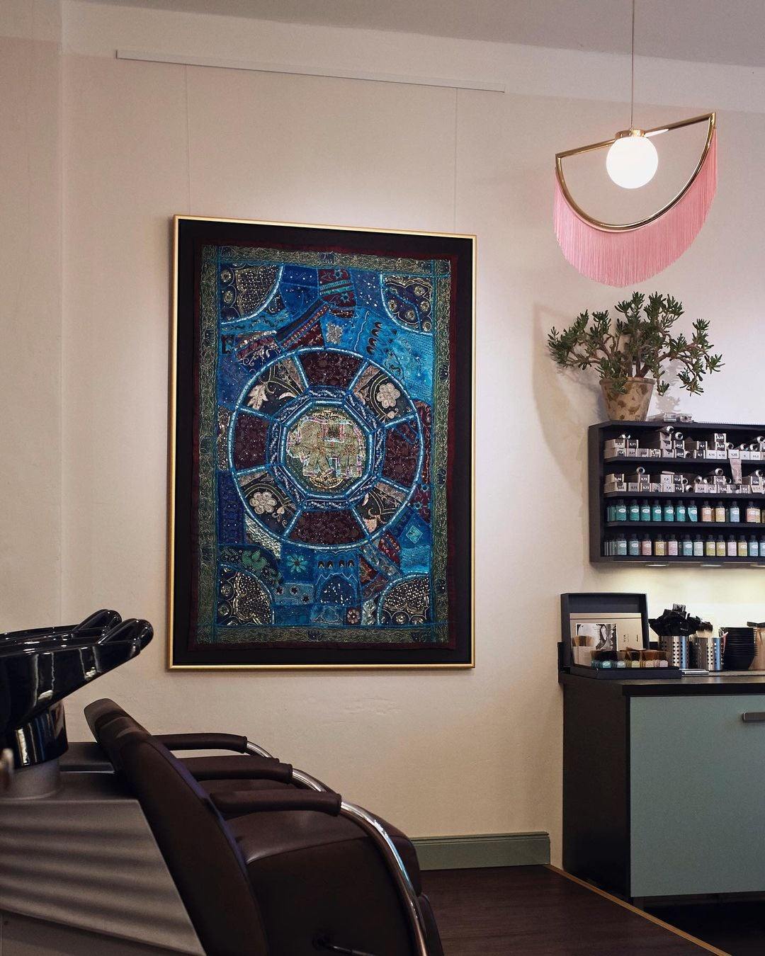 Such a precious jewel, the fringes elegantly adorn the golden metal geometric structure. The rigidity of the rainbow serves as a contradiction to the fragility and delicateness of the fringes. This silky and light curtain gently twirls under the effect of the air currents... Wink draws both the eye and the hand: you want to caress and run your hands through it, slipping them inside this waterfall of wools that are warm to the touch. The bulb is housed in a delicate white glass globel