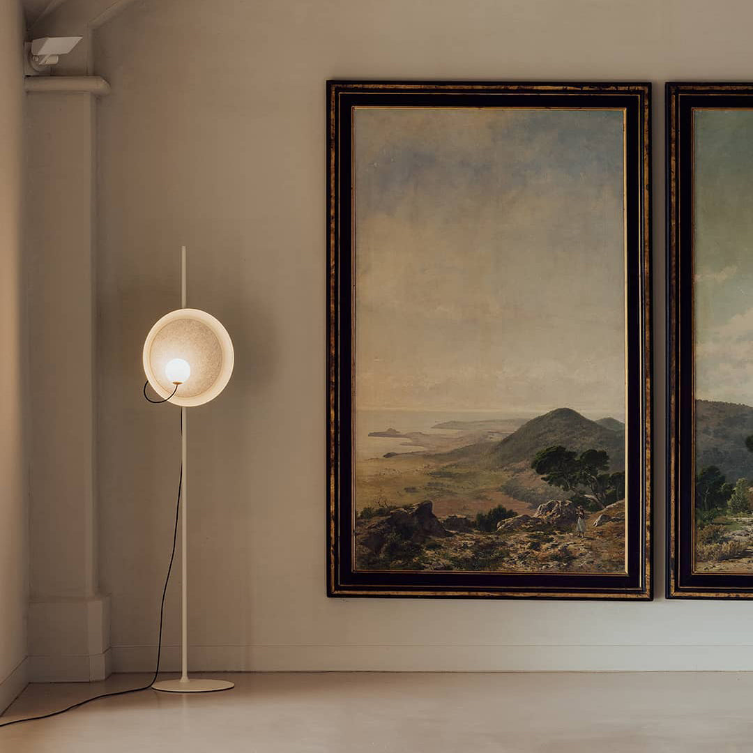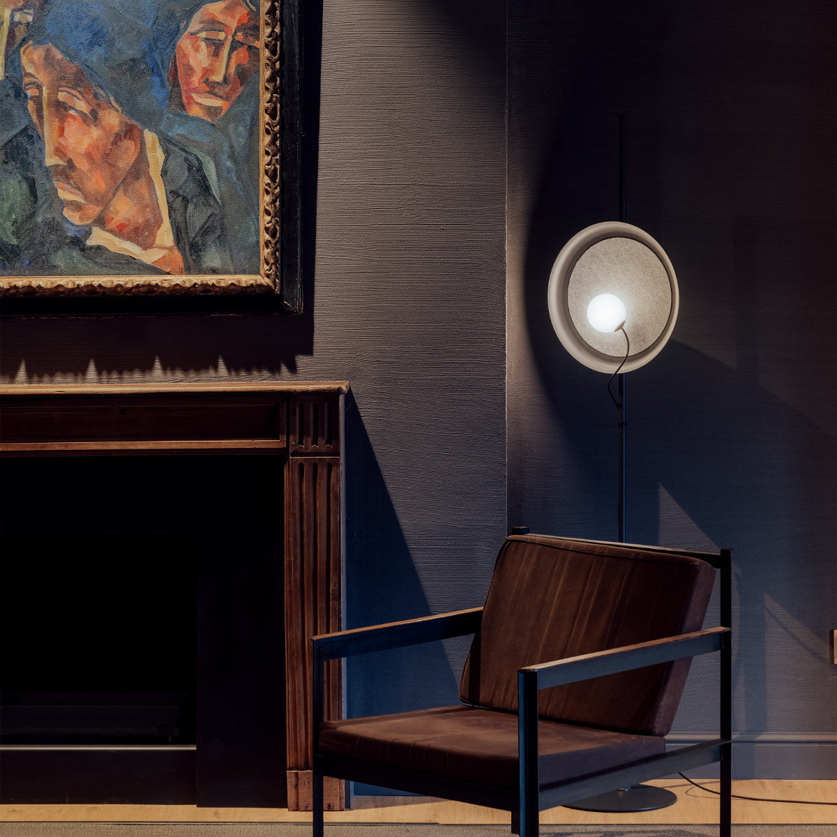 This lighting collection plays with the connecting thread between the glass lampshade and the lampshade. The lampshade moves lightly on the screen upholstery, which in turn acts as an acoustic insulator. The magnet inside the shade generates a magnetic field that subtly magnetizes the screen. The different colors and versions make it perfect for contract spaces where we want to generate rhythm and dynamism.